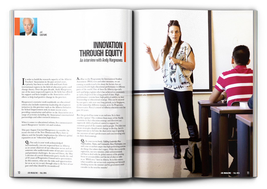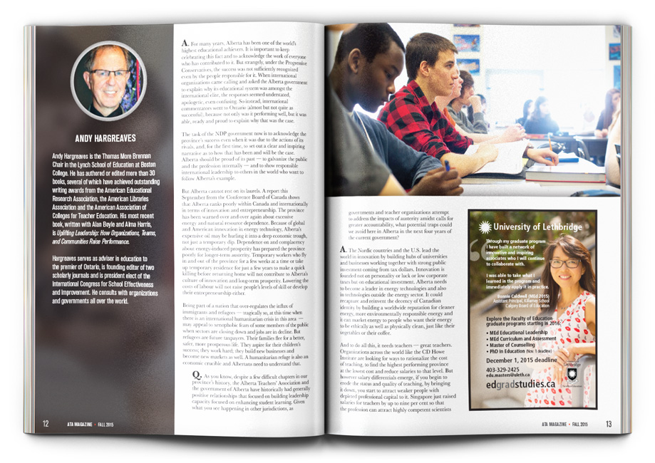 Design and layout of the ATA Magazine, a quarterly publication for the Alberta Teachers’ Association (64 pages).